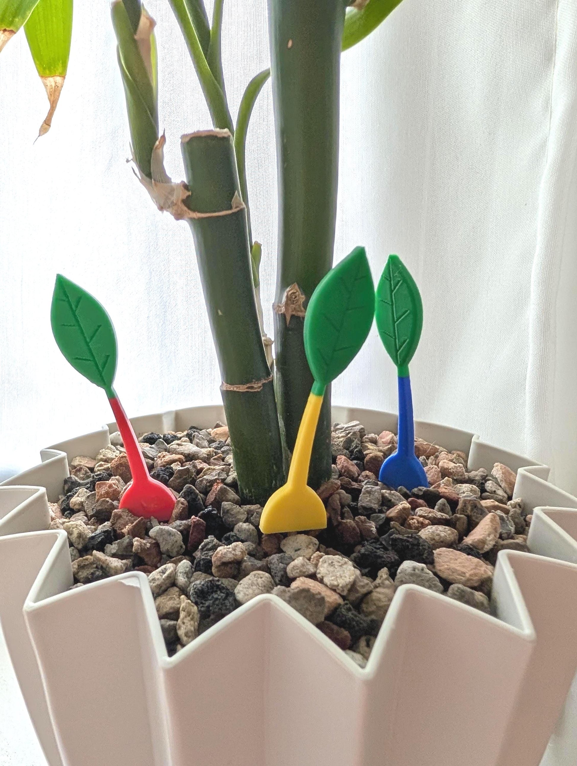 These mini alien creatures sprout from the ground like plants! A red, yellow, and blue trio each topped with a fresh green leaf, these fellas are ready to give your planet a burst of life!