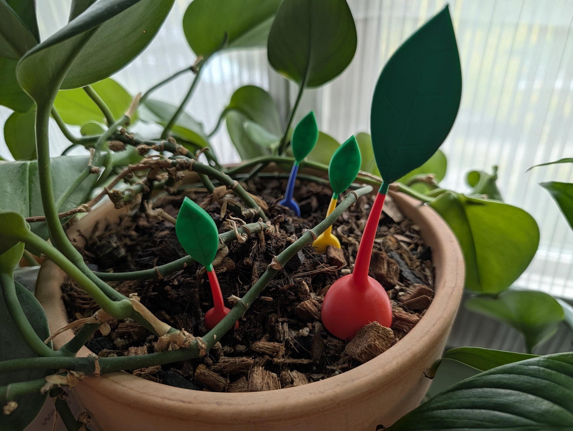Each Pluk-mini comes with a poker that you can install to help them stick in soil.
