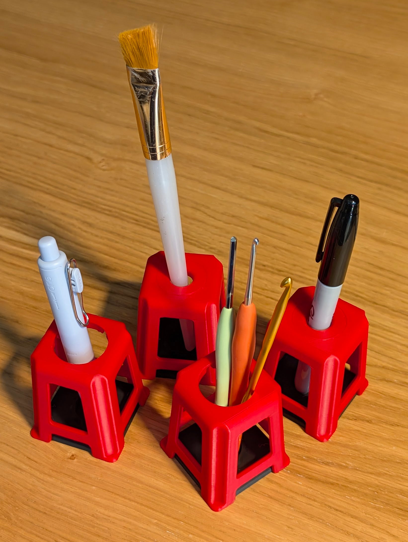 Able to suit many purposes, this can hold your pens, tools, figures, even an Apple Watch charger! The stable base ensures you can easily take your item out of the stool.