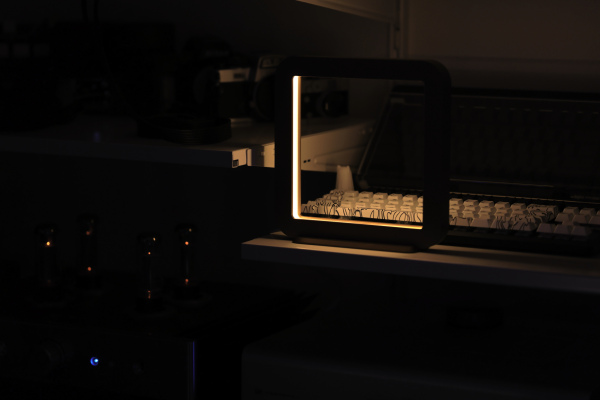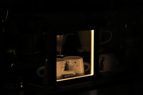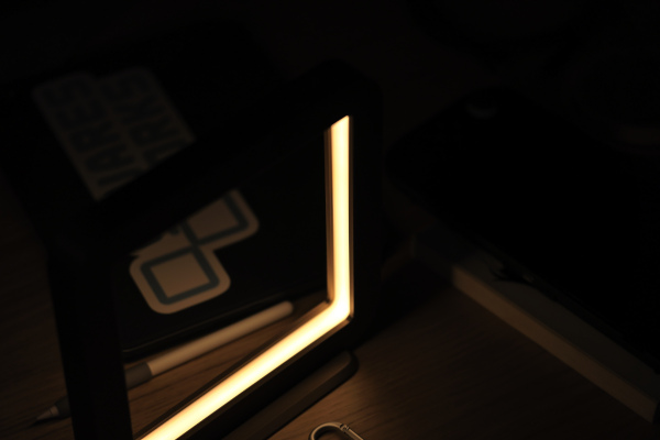 The square hole light runs counter to most lighting designs by having corners and directing light inward. In exploring this inversion, we found that we were able to build something effective yet interesting. With the warm tone COB LED and six levels of brightness, it works very well as a statement desk lamp or subtle lighting for a bookshelf, nightstand, anywhere you want smooth light over sharp and bright.